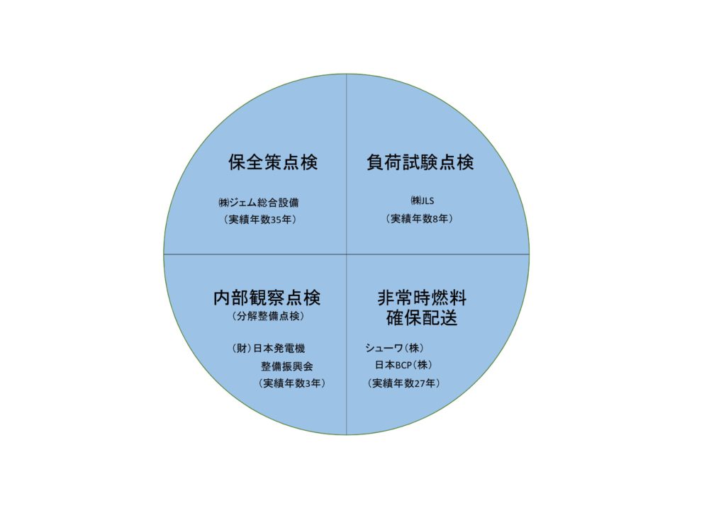 3つの点検体制と非常時電源に不可欠な燃料確保と緊急発送体制をJLAグループは、